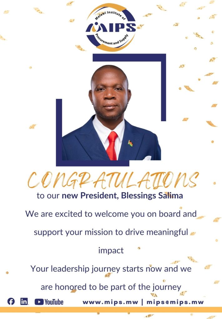 Malawi Institute of Procurement and Supply (MIPS) Membership, Management and Staff, congratulate the new Board of Directors following their nomination at the 13th Annual General Meeting (AGM) and further appointment by the Office of President and Cabinet as stipulated by the provisions of Section 5 of MIPS Act No. 3 of 2016.